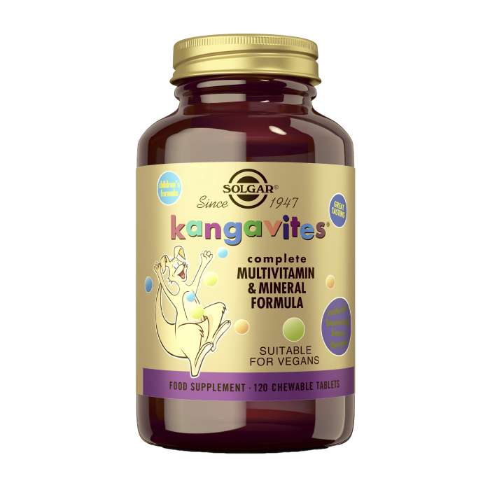 Solgar Kangavites® Bouncing Berry on pureskeltava ja marjanmakuinen lasten monivitamiini kolmesta ikävuodesta eteenpäin. Herkullinen marjaisa maku!