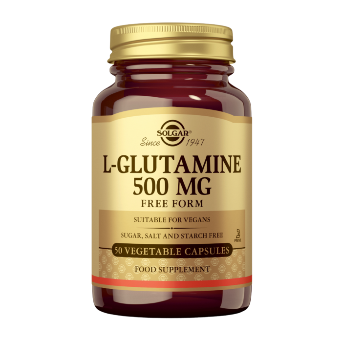 Solgar® L-Glutamiini 500 mg on korkealaatuinen aminohappovalmiste, joka sisältää mm. lihaksissa käytettävää glutamiini-aminohappoa.