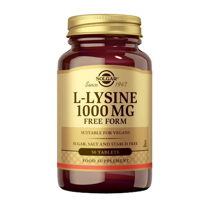 Solgar® L-Lysiini 1000 mg on korkealaatuinen, vahva aminohappovalmiste, joka sisältää keholle välttämätöntä lysiini-aminohappoa.