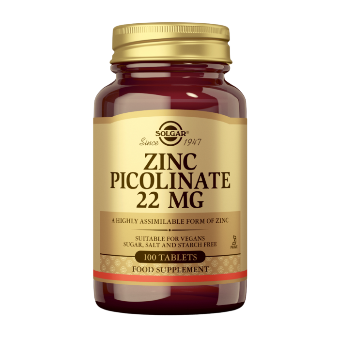 Solgar Sinkkipikolinaatti on tehokkaasti imeytyvä sinkin muoto tukemaan tukemaan vastustuskykyä sekä hiusten, ihon ja kynsien terveyttä. Tuote soveltuu myös herkkävatsaisille ja imeytyy tehokkaasti.