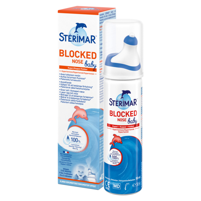 Stérimar Blocked Nose Baby on hypertoninen nenäsuihke, joka pohjautuu meriveteen. Valmistetta suositellaan lyhytkestoiseen käyttöön yli kolmen kuukauden ikäisten vauvojen nenän tukkoisuuden poistamiseksi. Avaa tukkoisen nenän nopeasti. Poistaa jopa paksun liman. Auttaa torjumaan flunssaa ja vähentämään sekundäärisen infektion riskiä huuhtomalla nenäontelot.
