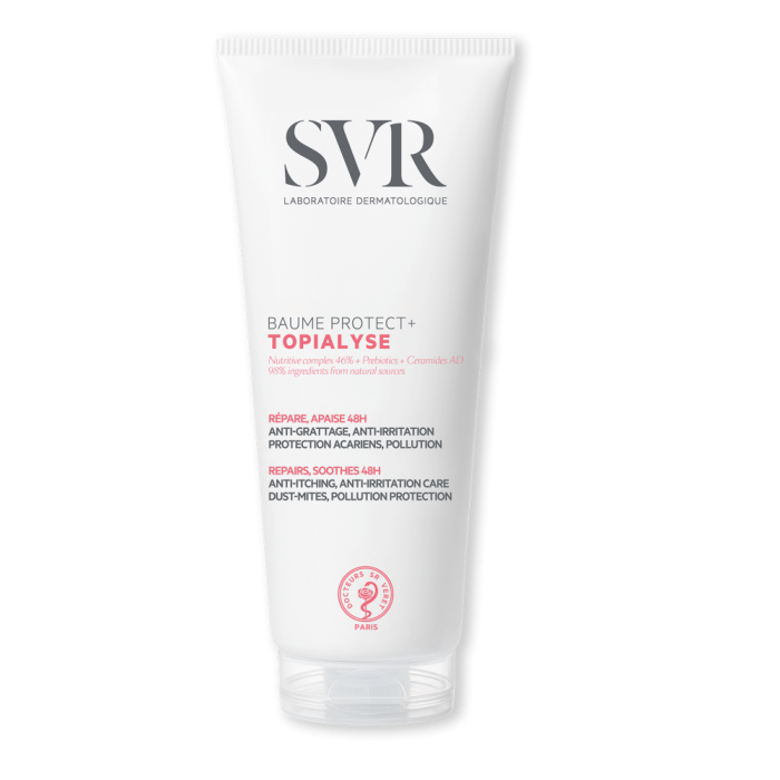 TOPIALYSE BAUME PROTECT+ balsami on ensimmäinen ihonhoitotuote, johon on lisätty patentoimamme Ceramides AD-ainesosa, joka suojaa ulkoisilta ärsykkeiltä (saastepartikkelit, pölypunkit jne.), jotka voivat pahentaa ärsytystä ja kutinaa. Balsami lievittää välittömästi ja pitkäkestoisesti kutinaa, jolloin iho pysyy rauhoittuneena, suojattuna ja korjattuna. Sen ravitseva, lipidejä täydentävä koostumus sulaa ihoon jättäen suojakalvon, joka estää saastepartikkelien kiinnittymisen. Sen tahmaamattoman koostumuksen ansiosta voit pukeutua heti levityksen jälkeen!