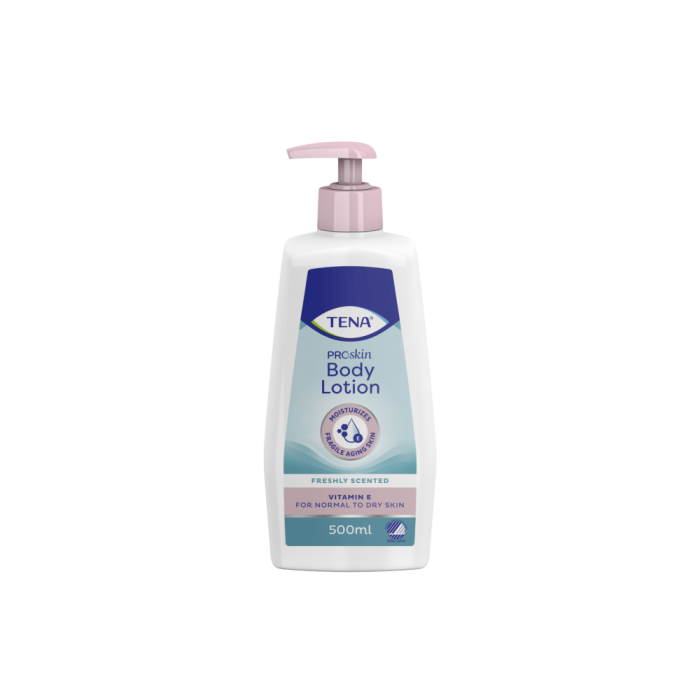 TENA ProSkin Body Lotion Kosteusemulsio sopii normaalille ja kuivalle iholle, ja kevyt koostumus hoitaa herkkää, ikääntyvää ihoa. Tämä helposti levitettävä ja nopeasti imeytyvä ravitseva kosteusemulsio pehmentää ja kosteuttaa koko vartalon. Raikkaan tuoksuinen koostumus sisältää hoitavia öljyjä ja E-vitamiinia sekä auttaa ihoa ylläpitämään luonnollista pH:ta.