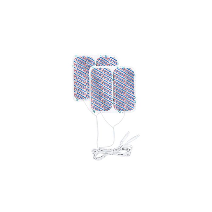 Pakkaus sisältää 4 kpl 50x100mm kokoisia ihoelektrodilappuja ja sekä kiinteän johdon.