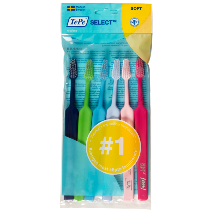 TePe Select Soft hammasharja sopii päivittäiseen hampaiden puhdistukseen nuorille ja aikuisille. Hammasharjan varsi on muotoiltu käyttäjäystävälliseksi ja ergonomiseksi, ja siitä on helppo ottaa tukeva, mutta kevyt harjausote. Hammasharjan harjaspää on kärkeensä kapenevan muotoinen, joka helpottaa ulottuvuuttasi kaikkialle hamamskaarellesi. TePe Select Soft hammasharjan harjakset ovat pehmeitä ja kärjestään pyöristettyjä, ja ne puhdistavat plakkia hampaistasi tehokkaasti.