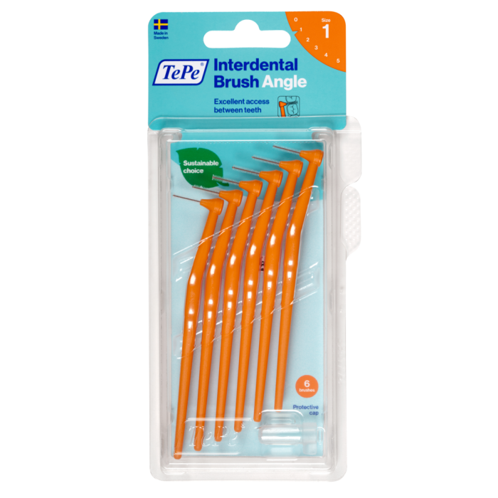 TePe Angle on suunniteltu hallittuun ja helppoon hammasvälien puhdistukseen. Harjan pää on pieni ja taivutettu, jotta se ulottuu helpommin takahampaiden väliin, sekä suulaen että kielen puolelta. Pitkällä, litteällä varrella saa hyvän ergonomisen otteen. TePe Angle on hyvä valinta, jos käsimotoriikka on heikentynyt. TePe Angle löytyy kuudessa värikoodatussa koossa, jotta se sopii kaikkiin hammasväleihin.Värikoodit ovat samat kuin Original-sarjassa. Kaikki koot on varustettu muovipäällysteisellä metallilangalla, joten hammasvälien puhdistaminen on hellävaraista ja turvallista. Etuja: Pieni taivutettu pää optimaaliseen ulottuvuuteen, pitkä, litteä varsi tekee harjasta helpon käsitellä, muovipäällysteinen metallilanka hellävaraiseen puhdistukseen.