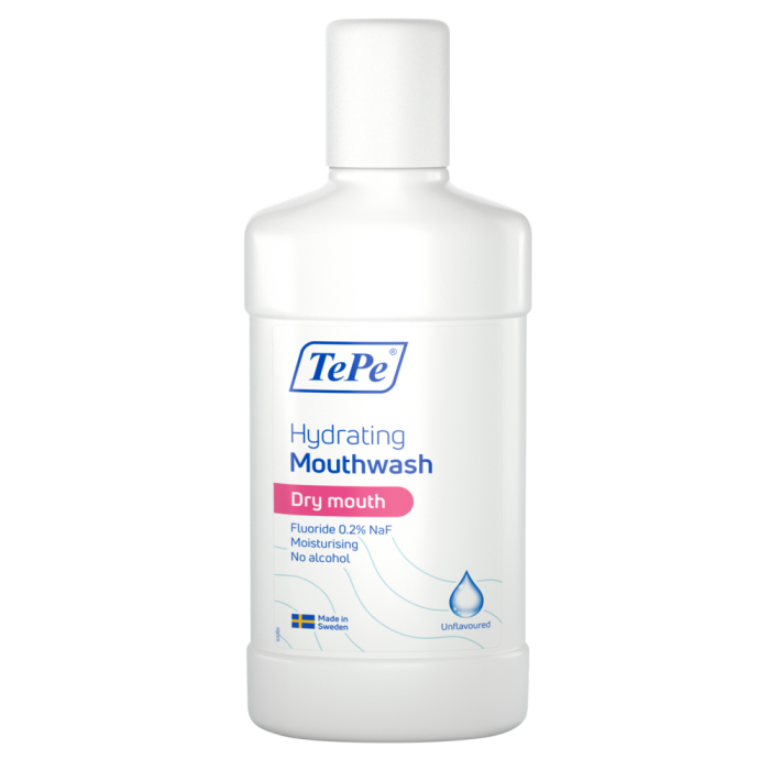 TePe Kosteuttava Suuvesi Maustamaton auttaa lievittämään suun kuivumisen oireita. Suuveden korkeampi viskositeetti (paksuus) kosteuttaa suun limakalvoa ja jättää miellyttävän tunteen. Vähentynyt syljeneritys lisää karieksen riskiä, ja siksi fluorihuuhtelua suositellaan täydentämään harjausta. Ei lisättyjä makuaineita. Annos 10 ml. Pakkauksessa 50 annosta.