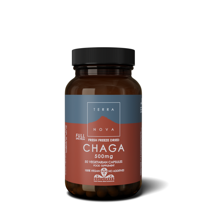 Terranova Full Spectrum Chaga 500 mg, eli pakurikääpä on lehtipuiden lahjoittajasieni ja se kasvaa yleensä koivun rungolla. Se on voimakas adaptogeeni, jolla on lukuisia terveyttä edistäviä ominaisuuksia. Eri kasvuvaiheista kerätty pakuri tarjoaa monipuolisesti erilaisia vaikuttavia aineita, minkä vuoksi tuote on Full Spectrum -laatuinen. Tuorepakastekuivaus säilyttää pakurin bioaktiiviset ominaisuudet koskemattomana. Täyteaineeton, vegaaninen.