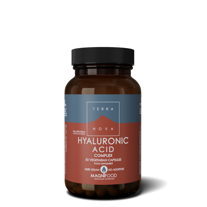 Terranova Hyaluronihappo Complex sisältää markkinoiden monimuotoisimman hyaluronihappokompleksin, jossa on myös helpommin imeytyviä pienempiä molekyylirakenteita. Lisäksi mukana on hyaluronihapon hyödyntämistä tehostavia marjoja ja kasveja, kuten metsämustikkaa, ruusunmarjaa ja nokkosta. Hyaluronihappo sopii tukemaan mm. ihon kosteustasapainoa.