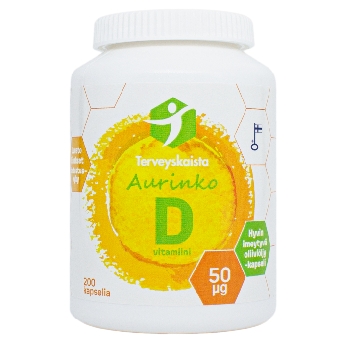 Terveyskaista Aurinko D 50 µg 200 kaps extra virgin oliiviöljy