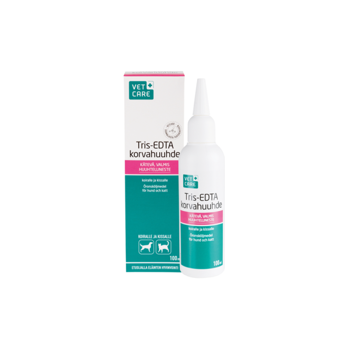Vetcare Tris-EDTA -korvahuuhde on tarkoitettu antibioottihoidon (fluorokinoloni tai gentamysiini) tueksi silloin kun tulehduksen aiheuttaja on multiressitentti gram -negatiivinen bakteeri (Pseudomonas aeruginosa). Tris-EDTA laskee bakteerien MBC- ja MIC- arvoja ja mahdollistaa hoidon onnistumisen.