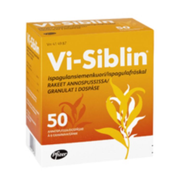 Vi-Siblin sopii toistuvan ummetuksen ja vatsan toimintahäiriöiden hoitoon päivittäiseen käyttöön. Vi-Siblin on ruokosokerilla makeutettu lääkekuitu, joka helpottaa ummetusta ja normalisoi suoliston toimintaa vaikuttaen näin sekä kovaan että löysään vatsaan. Vi-Siblinin vaikuttava aine ispaghulansiemenkuori sitoo itseensä vettä, jolloin suolen sisällön tilavuus lisääntyy ja suolen toiminta normalisoituu. Vi-Siblin tasapainottaa sekä kovaa että löysää vatsaa ja auttaa ruoansulatusta toimimaan paremmin. Vi-Siblin-hoito aikuisille ja yli 6-vuotiaille lapsille.
