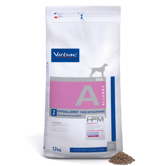 Virbac HPM Dog Hypoallergy Hydrolysed Fish Protein A2 kuivaruoka on erikoisruokavalio koiralle, jolla on ruoka-aineallergia tai -yliherkkyys. Käytä koirasi eläinlääkärin tarkastuksessa aina ennen erikoisruokavalion aloittamista. Erikoisruokia tulee antaa koiralle vain eläinlääkärin ohjeiden mukaisesti.