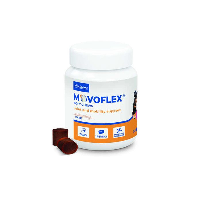 Movoflex sisältää ainutlaatuisen koostumuksen avainainesosia, jotka auttavat ylläpitämään nivelten terveyttä ja liikkuvuutta kaikenikäisillä koirilla.
