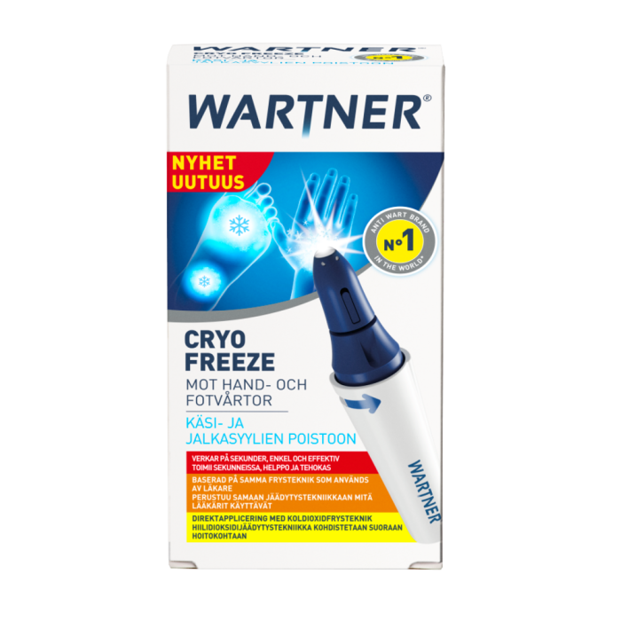 Wartner Cryo Freeze perustuu uuteen lääkärien käyttämään hiilidioksidijäädytystekniikkaan, joka jäädyttää syylän syvältä. Se poistaa käsi- ja jalkasyylät tehokkaasti ja nopeasti täsmäjäädytyksellä. Mikään muu itsehoito ei ole yhtä tehokas tai nopea.