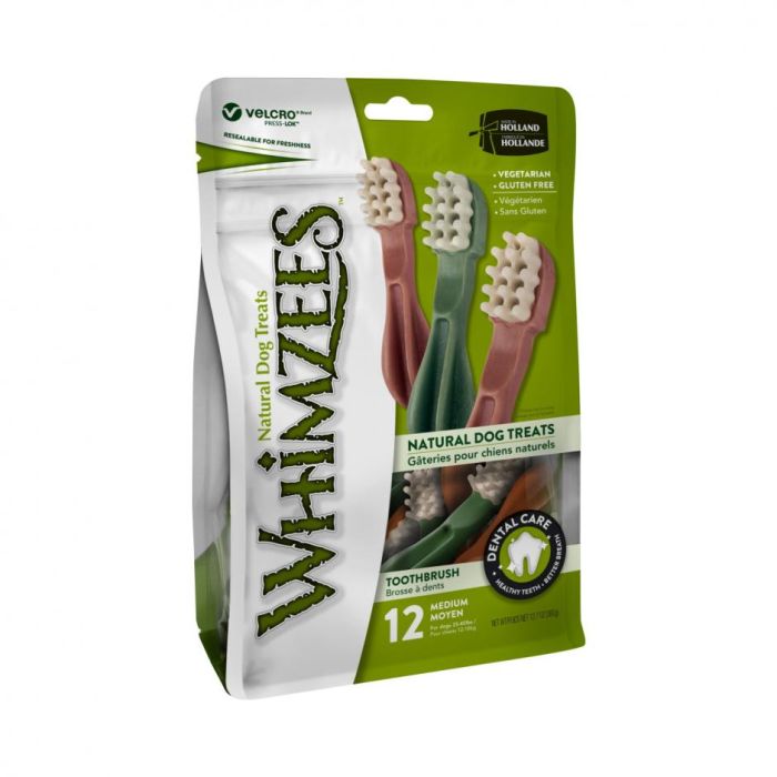 WHIMZEES hammasharjan muotoiset pureskelupalat koiran päivittäiseen hammashygieniaan. Perunatärkkelyksestä valmistetut Whimzees puruhammasharjat sopivat hampaiden puhdistukseen esimerkiksi silloin, kun tavalliset hammasharjaluut eivät sovi, sillä ne eivät sisällä vehnää eikä eläinperäisiä sivutuotteita. Hampaita puhdistavat puruluut ylettyvät paremmin myös takahampaisiin, joihin on vaikea yltää hammasharjalla. Sitkeä materiaali puhdistaa hampaiden pintoja tehokkaasti. WHIMZEESin ainutlaatuiset nyppylämuodot varmistavat kunnollisen verenkierron ikenissä ja ehkäisevät niin pahanhajuista hengitystä kuin hammaskiven kertymistäkin. WHIMZEESit sisältävät kuutta luonnollista ja funktionaalista raaka-ainetta, eikä lainkaan keinotekoisia ainesosia, värejä, makuja, säilöntäaineita, geenimuunneltua materiaalia, gluteenia tai lihaa. Niissä on myös paljon kuituja ja vähän energiaa ja sokereita.