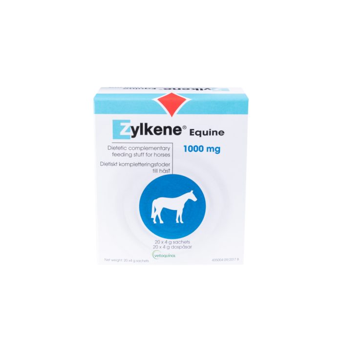 Täydennysrehu hevoselle. Hevosen reaktioiden vähentäminen kuormittavissa tilanteissa. Zylkene Equine sisältää kaseiinista eristettyä alfa-kasotsepiinia. Annostele hevosille päivittäisissä paineistavissa tilanteissa tai ennen tiedossa olevia sellaisia tilanteita, kuten ympäristön muutos, koppilepo, uudet ihmiset tai eläimet, kengitys, raspaus, kuljetukset ja kaikki muutokset normaalissa päivärytmissä.